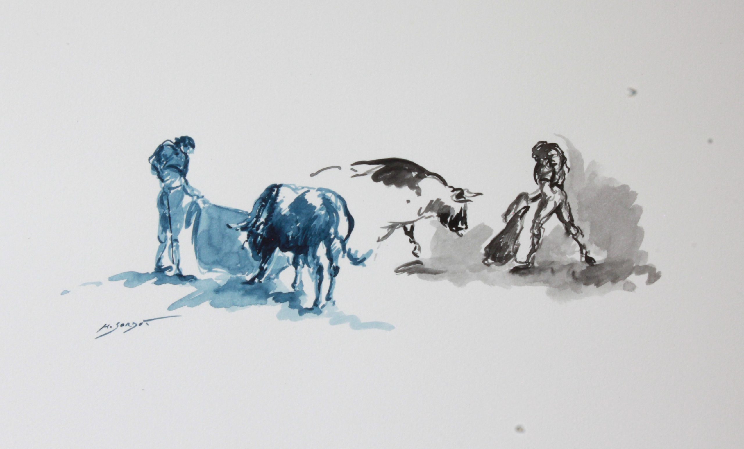 Aquarelle lavis, 19x31cm (sans encadrement).