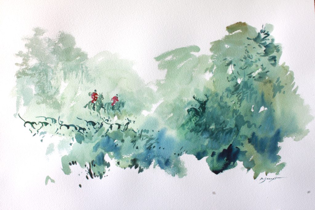 Aquarelle lavis, 35x54cm (sans encadrement).