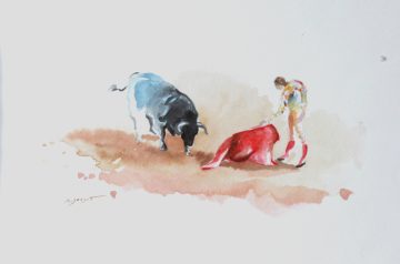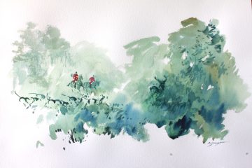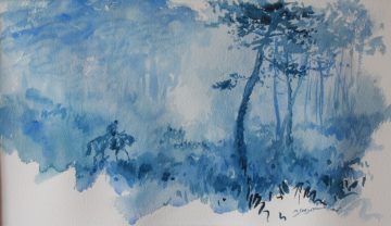 Aquarelle lavis, 19x31cm (sans encadrement).