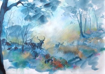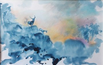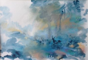 Aquarelle lavis réhaussée de pastel, 30x45cm (sans encadrement).